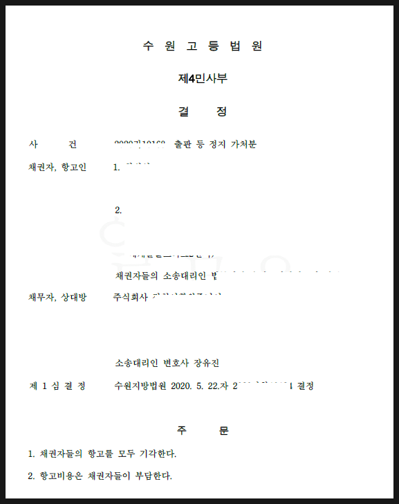 이 사안에서 상대방은 자신에게 출판권이 있는데 채권자가 이를 어기고 별도의 출판을 하였다며 출판금지가처분을 청구했습니다.