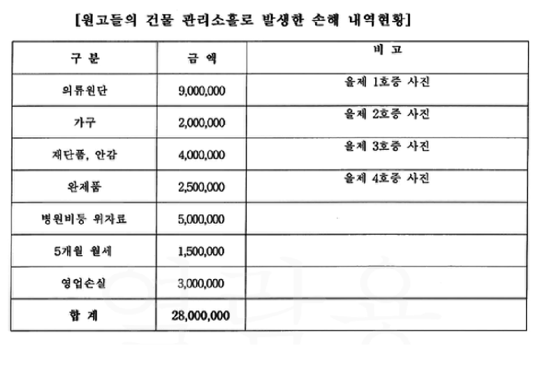 의뢰인이 주장한 손해액과 입증 방법은 아래와 같았습니다.