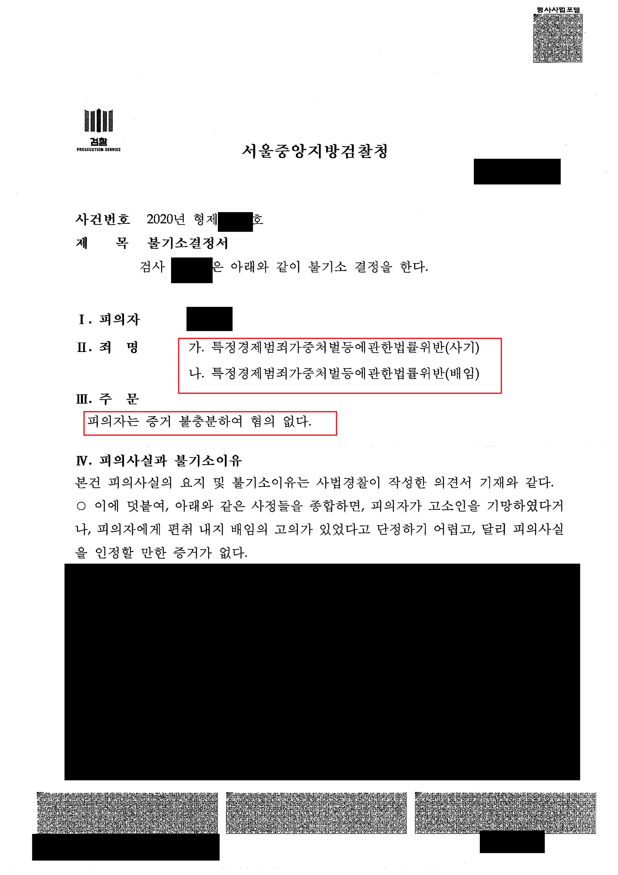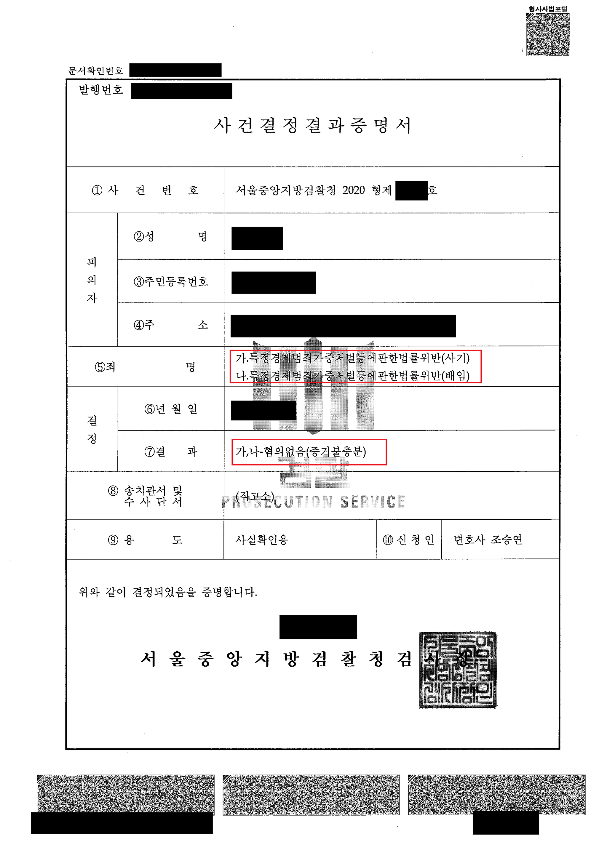 무혐의 불기소처분결정을 받으실 수 있었습니다.