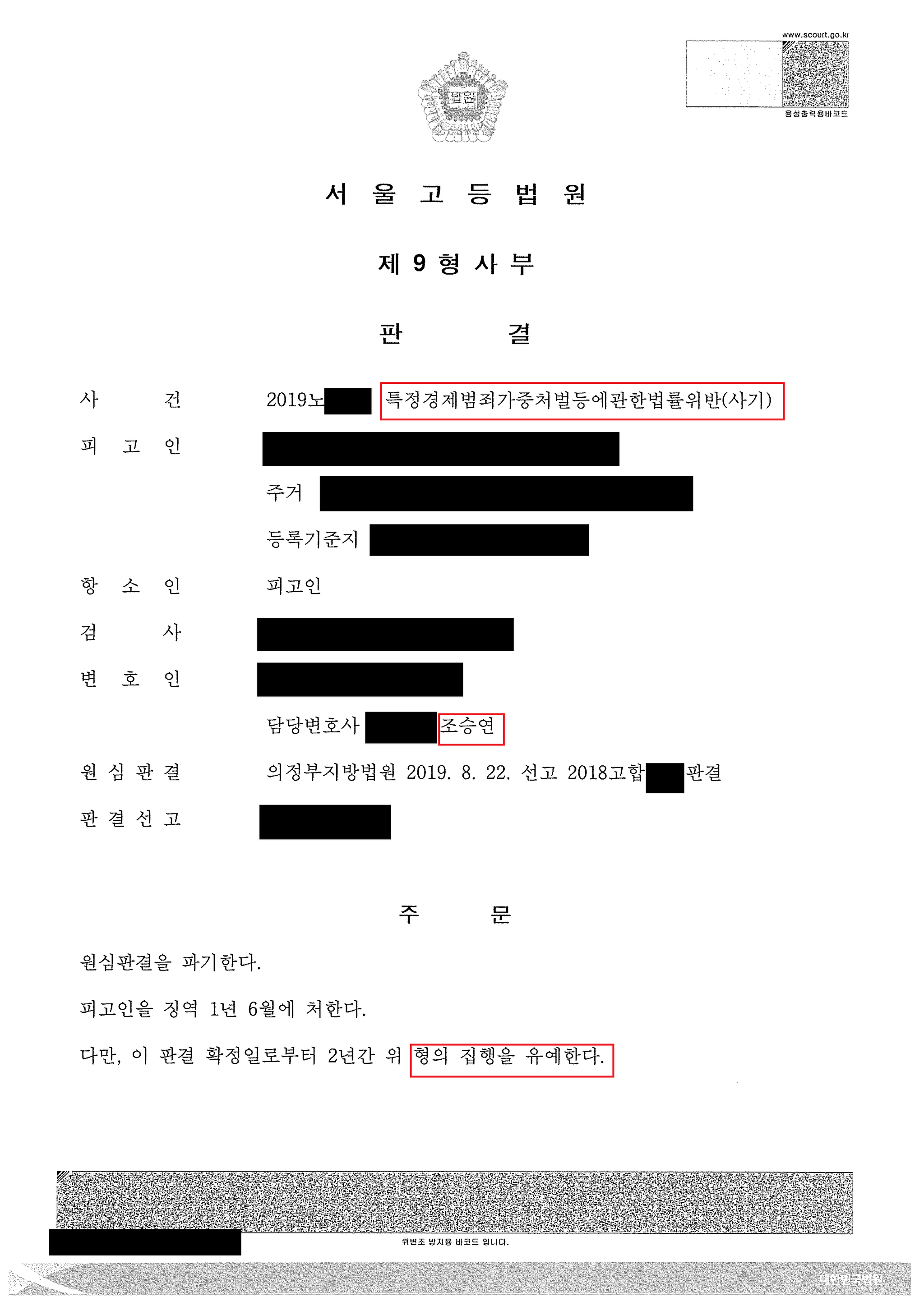 집행유예 판결을 받을 수 있었습니다.