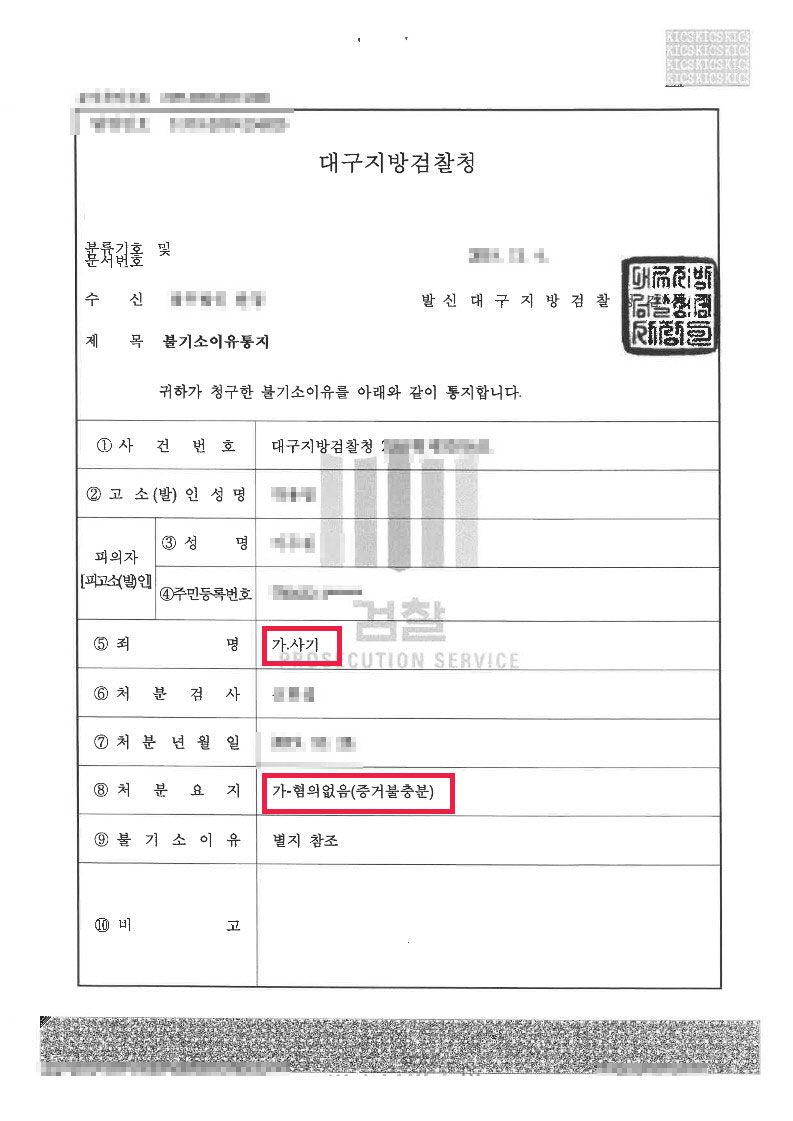 그러나 수사기관에서 여러부분의 의심할 정황 등이 존재함에도 저희측 주장을 받아들여줘서 좋은 결과가 있게 되었는데, 사기죄는 상황이나 증거를 어떻게 해석하는지에 따라 그 결과가 달라질 수 있습니다.