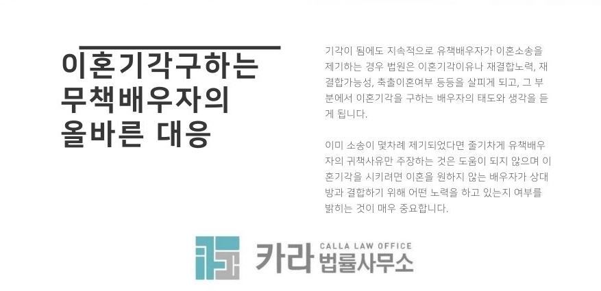 무책배우자가 아무리 이혼에 응하지 않더라도 유책배우자 입장에서는 꾸준히 기각에도 소송을 제기하는 이유입니다.
