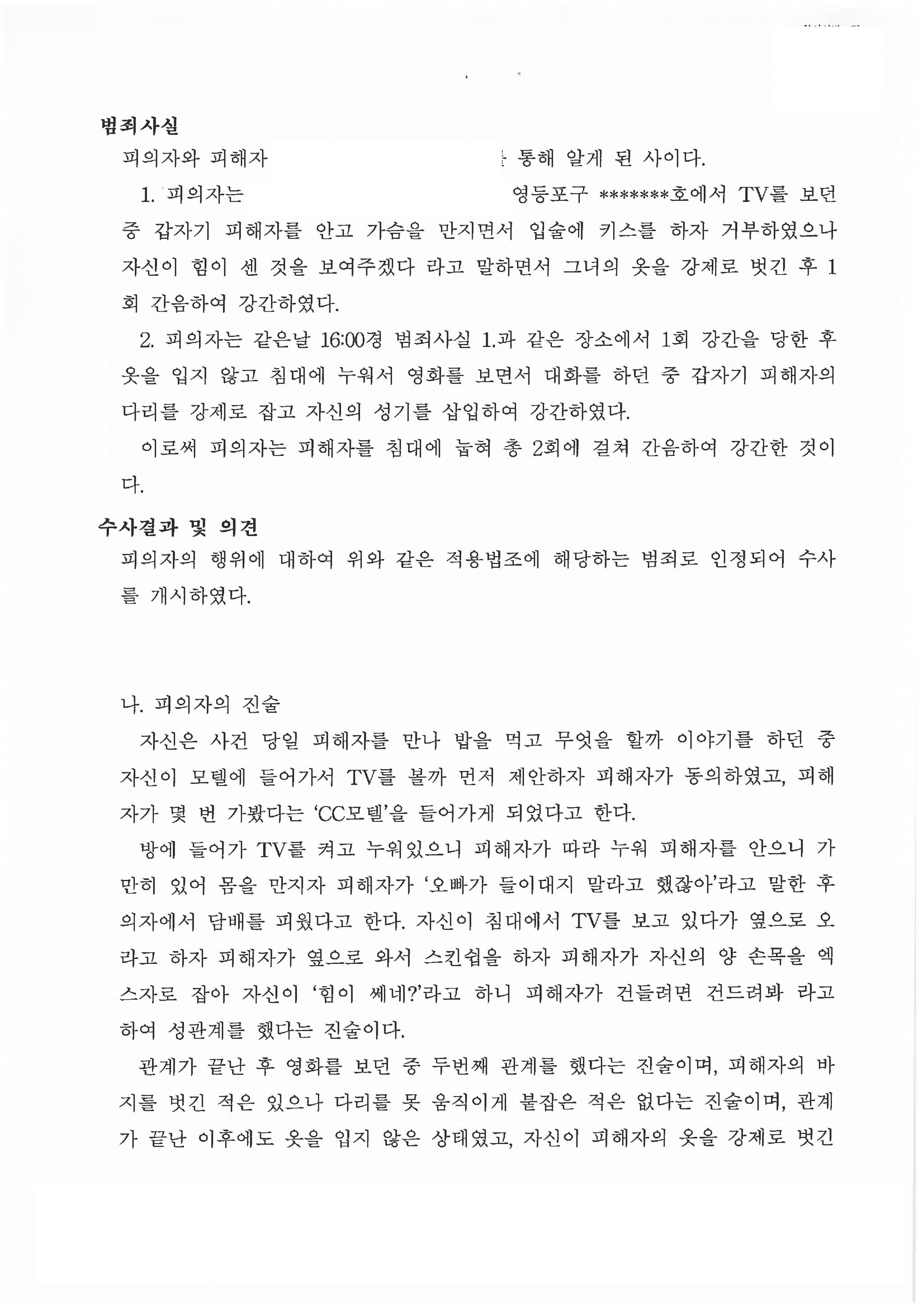 이에 본 변호인은 피해자의 주장의 신빙성을 탄핵하면서, 의뢰인의 진술에 허점이 없도록 시간대별로 있었던 일을 명확히 정리하였고, 이를 뒷받침 할 수 있는 자료(모텔 영화 결제 결제내역 등)를 제출하였습니다.