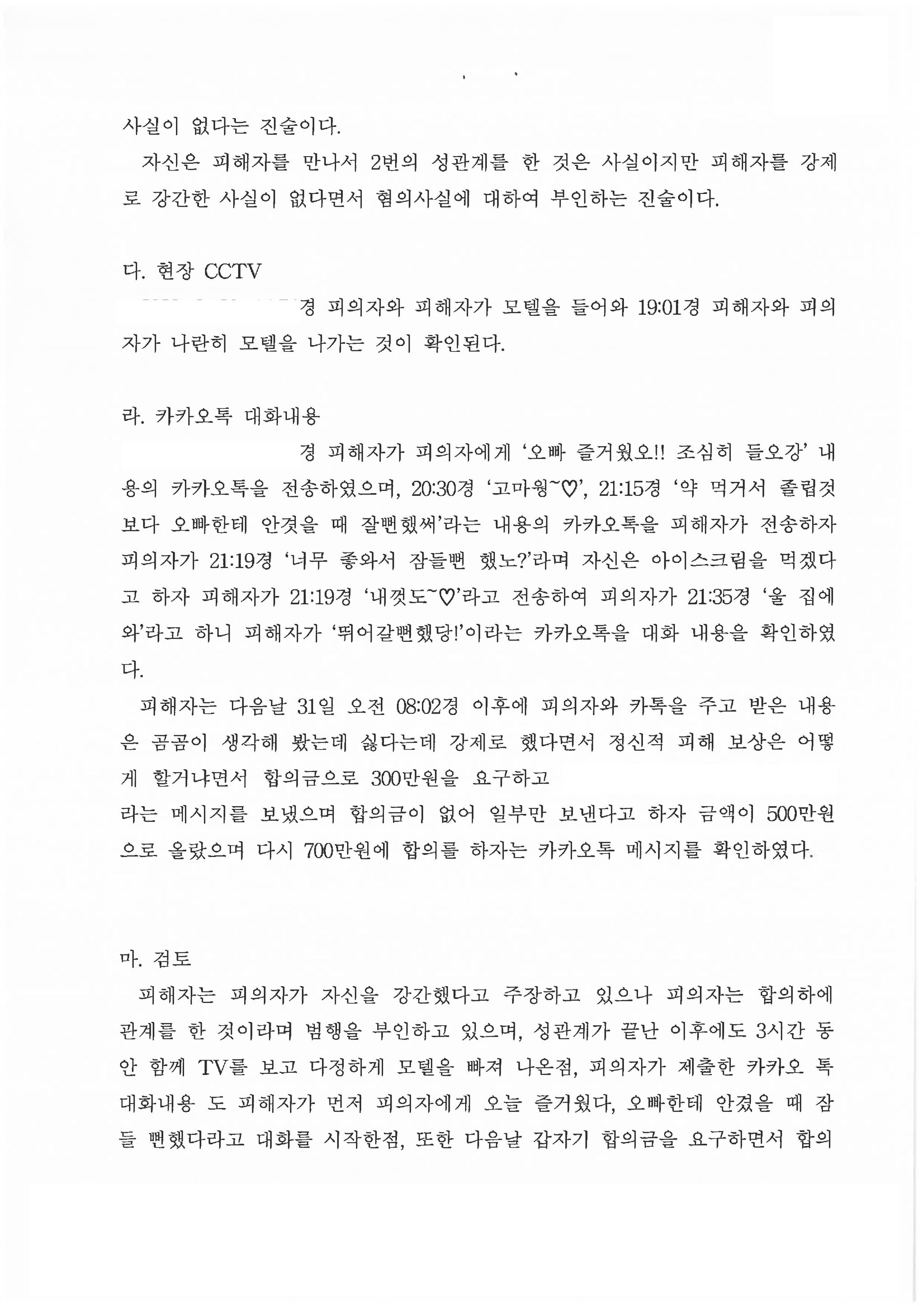 결국 검찰은 피해자 주장의 신빙성을 의심하여 불기소 처분을 하였습니다. 사건 전후 당사자들의 대화내용이 매우 중요하다는 사실, 이를 명료하게 현출하는 것이 필요하다는 것을 알 수 있습니다.