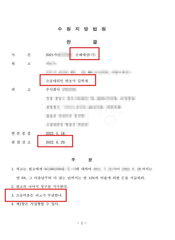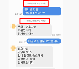 전부승소하였습니다. 워낙 상대변호사와 심하게 논쟁한 후, 전부승소를 해서 더욱 기뻤습니다.