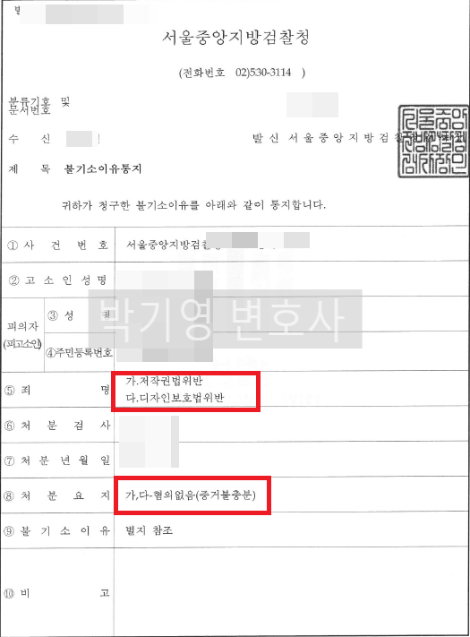 그 결과 수사기관 역시 "'B'씨의 제품은 저작권자의 창작성을 드러내는 부분이 존재하는 것으로 보이지 아니하고 심미적 감각을 불러일으킬 만한 디자인적 요소도 있다고 보기 어렵다"는 등의 이유로 증거불충분으로 무혐의 처분을 하였습니다.