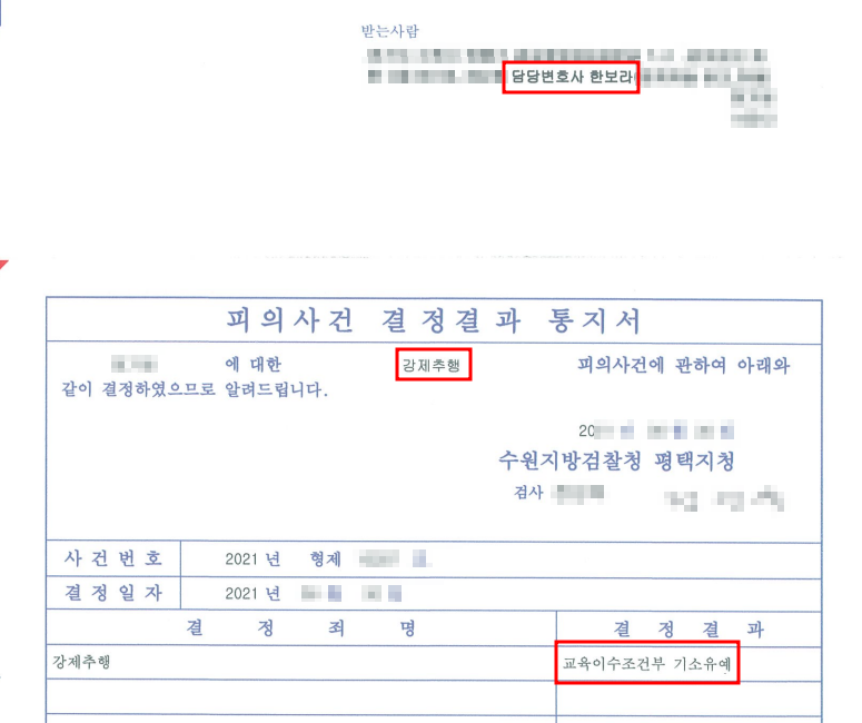 위와 같은 한보라 변호사의 주장을 받아들인 검찰은 의뢰인에게 ‘교육이수조건부 기소유예’ 처분을 하였습니다.