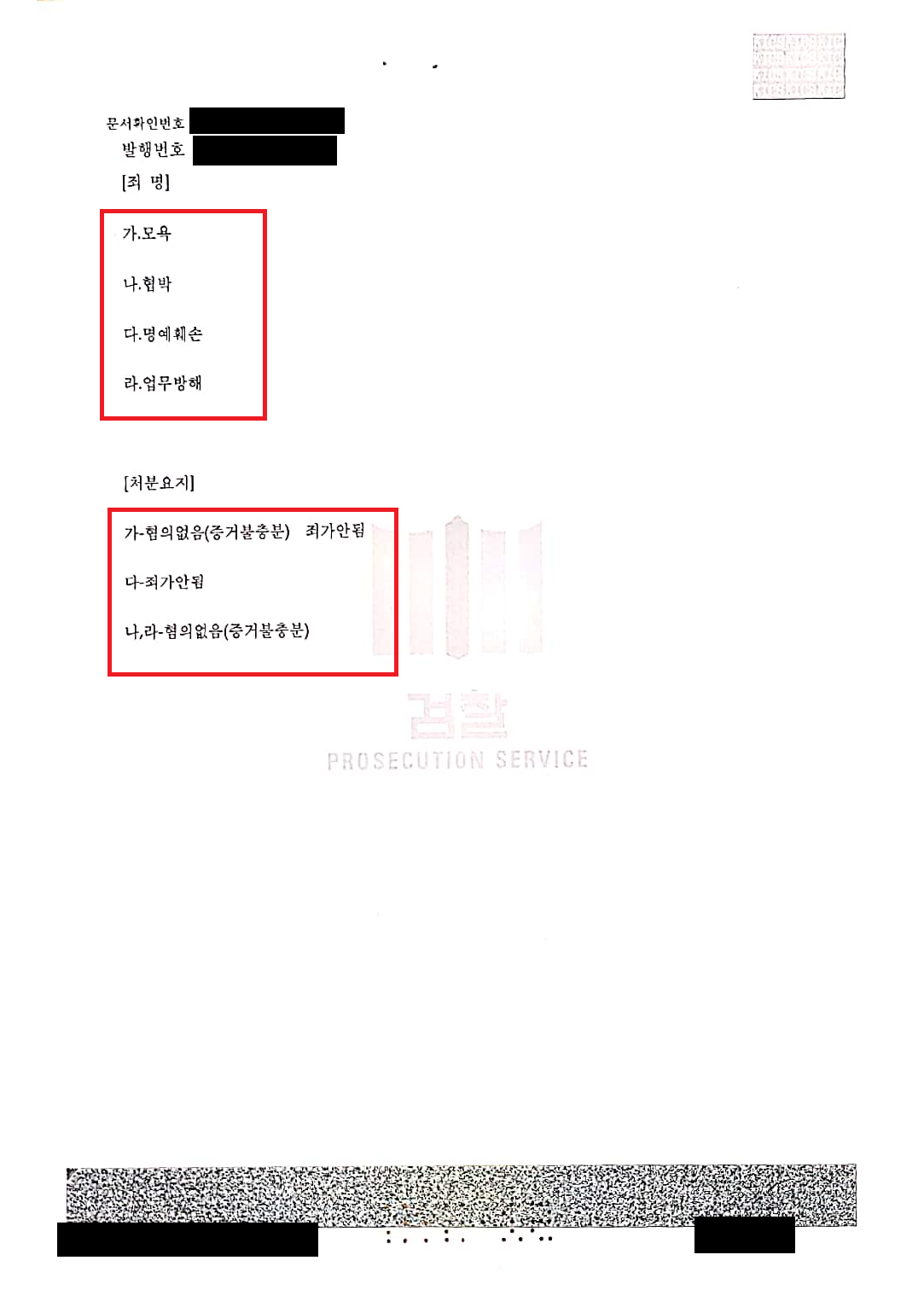명예훼손 및 모욕 사건으로 인하여