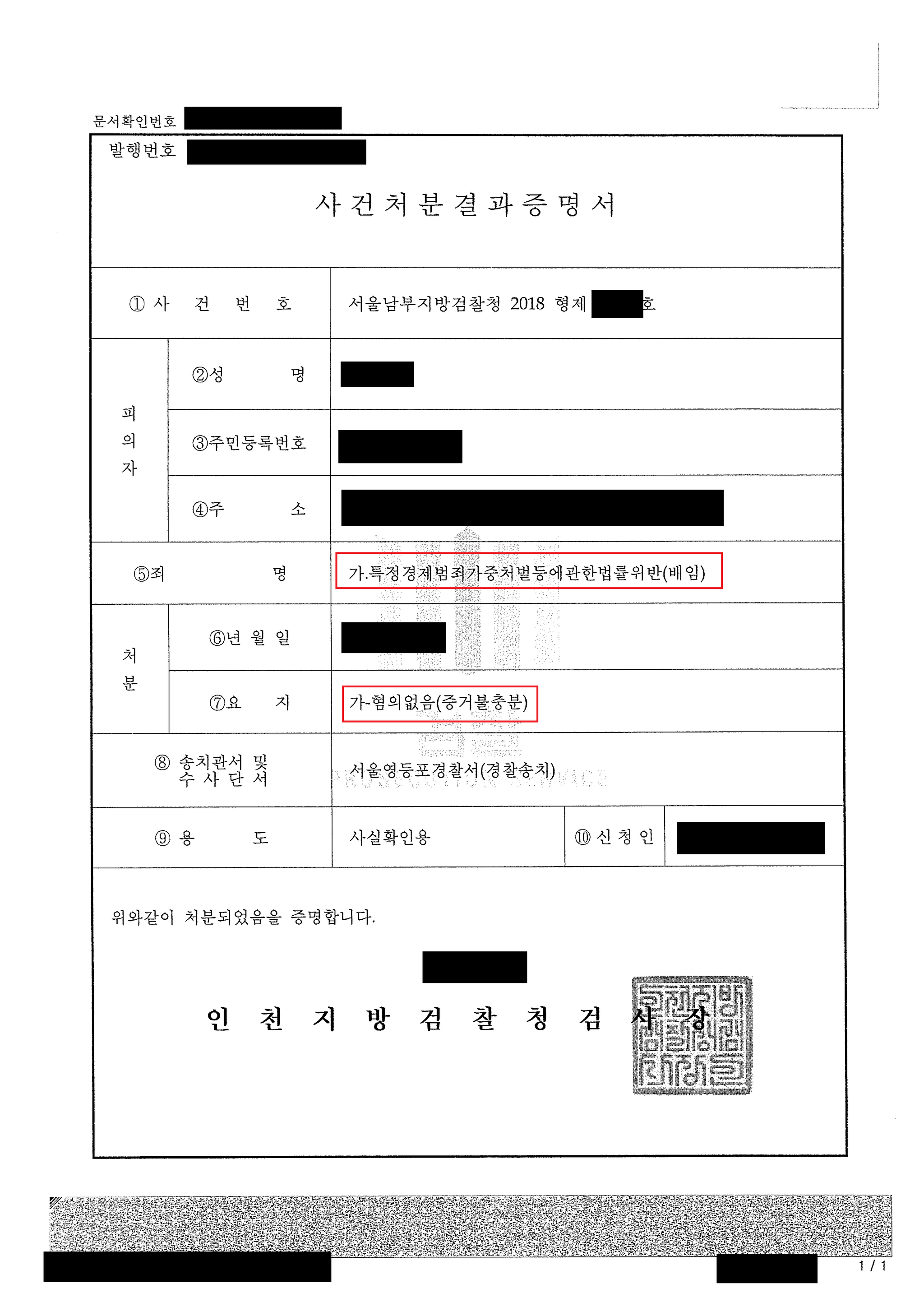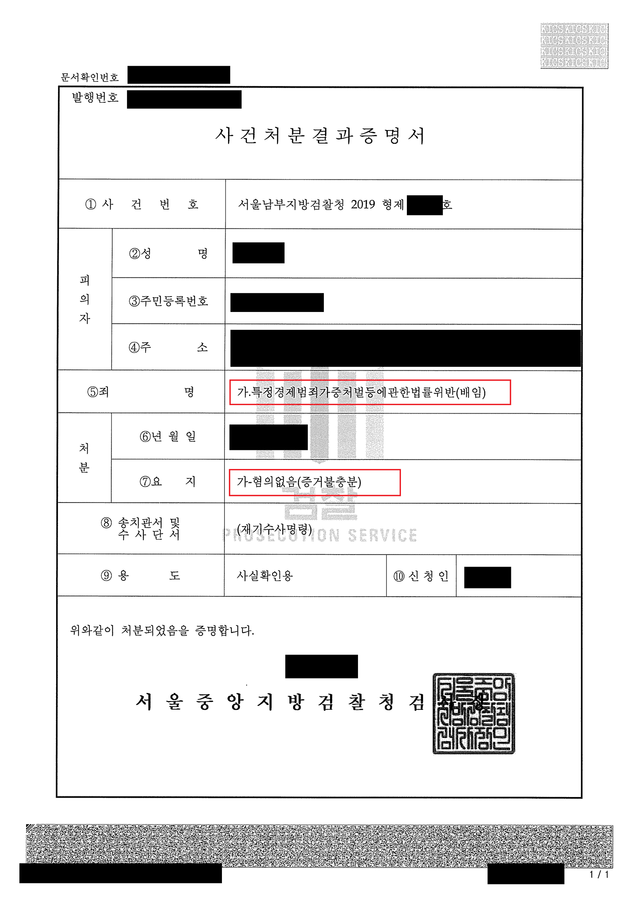 무혐의 불기소 처분이라는