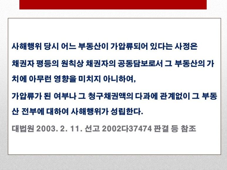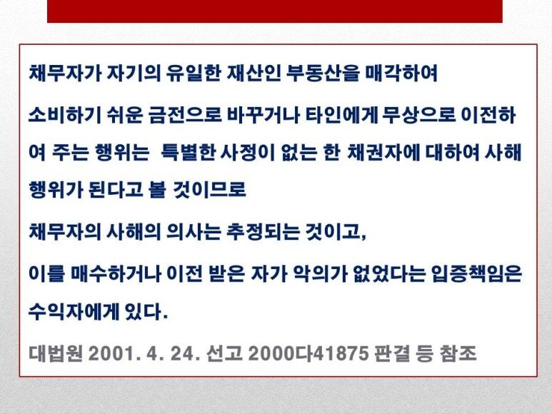 1. 원칙적으로 유일한 부동산의 처분행위는 사해행위로 봅니다.