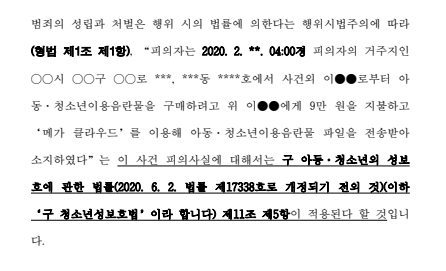 변호인은, 우선 이 사건에는 2020. 6. 2. 개정된 신법이 아닌 이전의 구법이 적용되어야 한다는 점을 법리적으로 주장하였고, 나아가 1) 의뢰인에게는 아동·청소년성착취물의 소지에 대한 '고의'가 없었다는 점 및 2) 메가클라우드 링크를 전송받아 저장소 내의 음란물을 시청한 것을 음란물을 '소지'한 것으로 볼 수는 없다는 점 등을 적극 주장하였습니다.