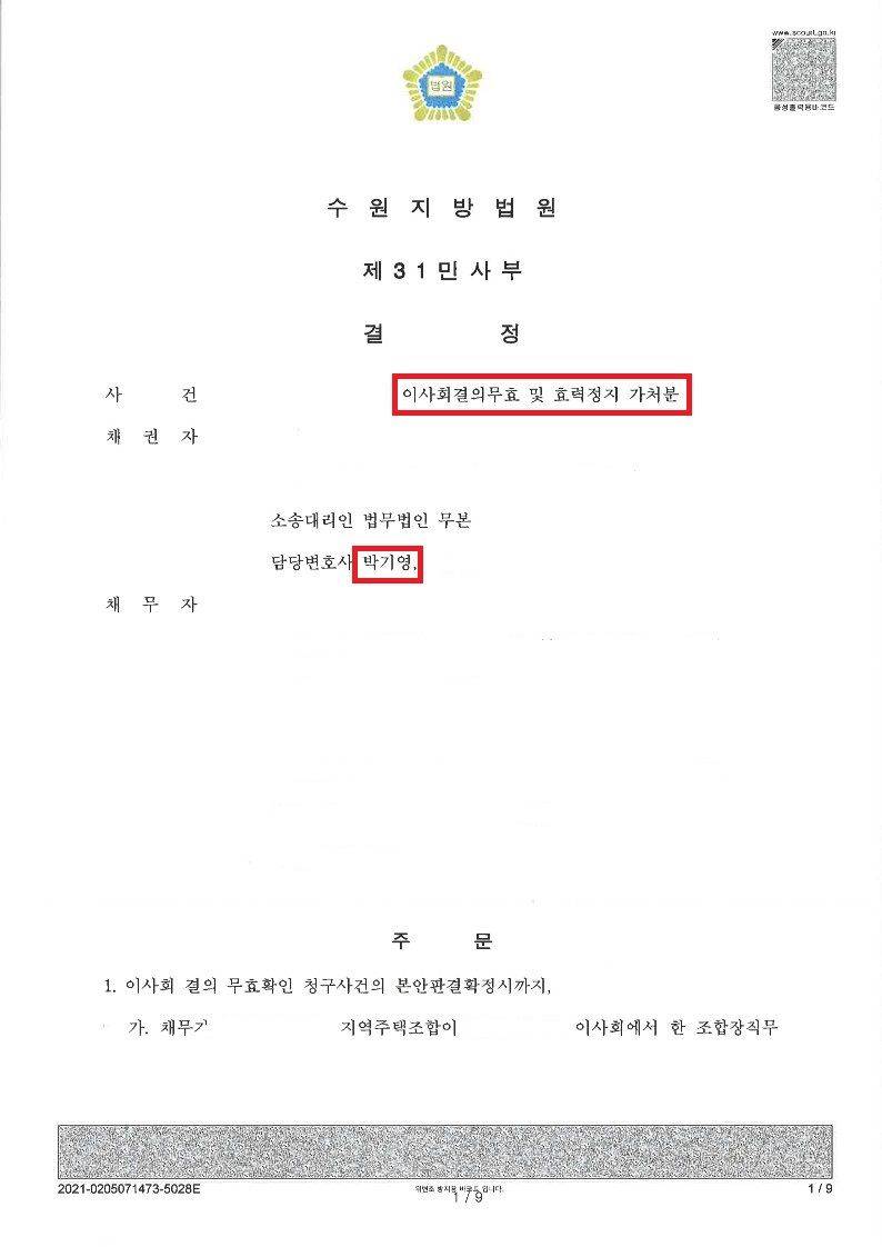 지역주택조합에서 이사회에서 조합장이 부당하게 해임을 당했다는 내용입니다(지역주택조합 뿐만 아니라 재건축 조합, 회사 등 이사회 내지 총회 등의 결의가 부당 한 경우에도 동일하게 적용될 것입니다)