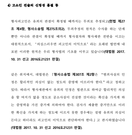 위와 같이 다양한 증거자료들을 활용하여 고소인 진술의 신빙성을 탄핵함으로써 검찰은 고소인 진술 전반의 신빙성을 의심하게 되었고, 그 결과 명백한 증거(카카오톡 캡처 자료)가 있었던 정보통신망법위반(명예훼손)의 점에 대해서만 약식기소를 하고 나머지 명예훼손의 점 및 강제추행의 점에 대해서는 혐의없음(증거불충분) 처분을 내렸습니다.