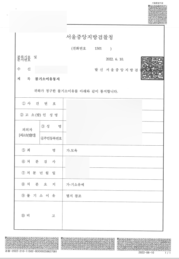 기소유예 처분.