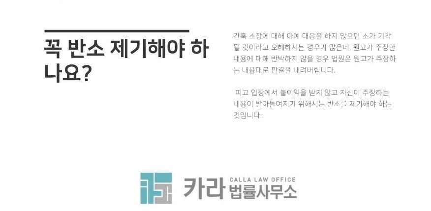 간혹 소장에 대해 아예 대응을 하지 않으면 소가 기각될 것이라고 오해하시는 경우가 많은데, 원고가 주장한 내용에 대해 반박하지 않을 경우 법원은 원고가 주장하는 내용대로 판결을 내려버립니다.