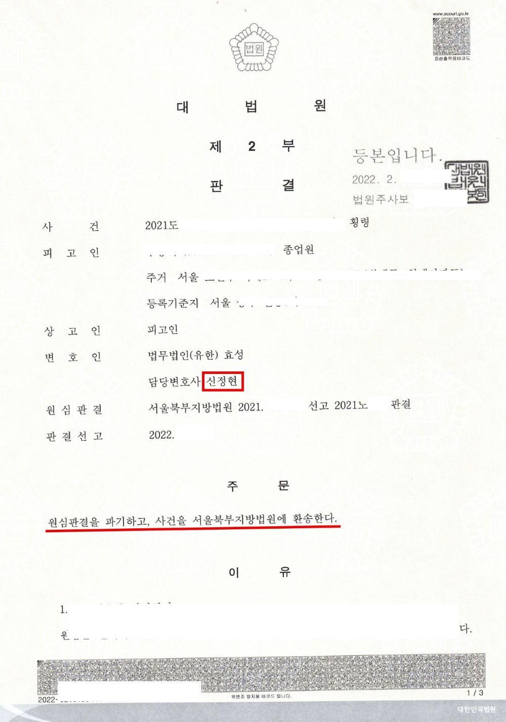 저는 종종 이렇게 대법원 상고심에서 항소심 판결을 뒤집고 파기환송을 받기도 했는데요,