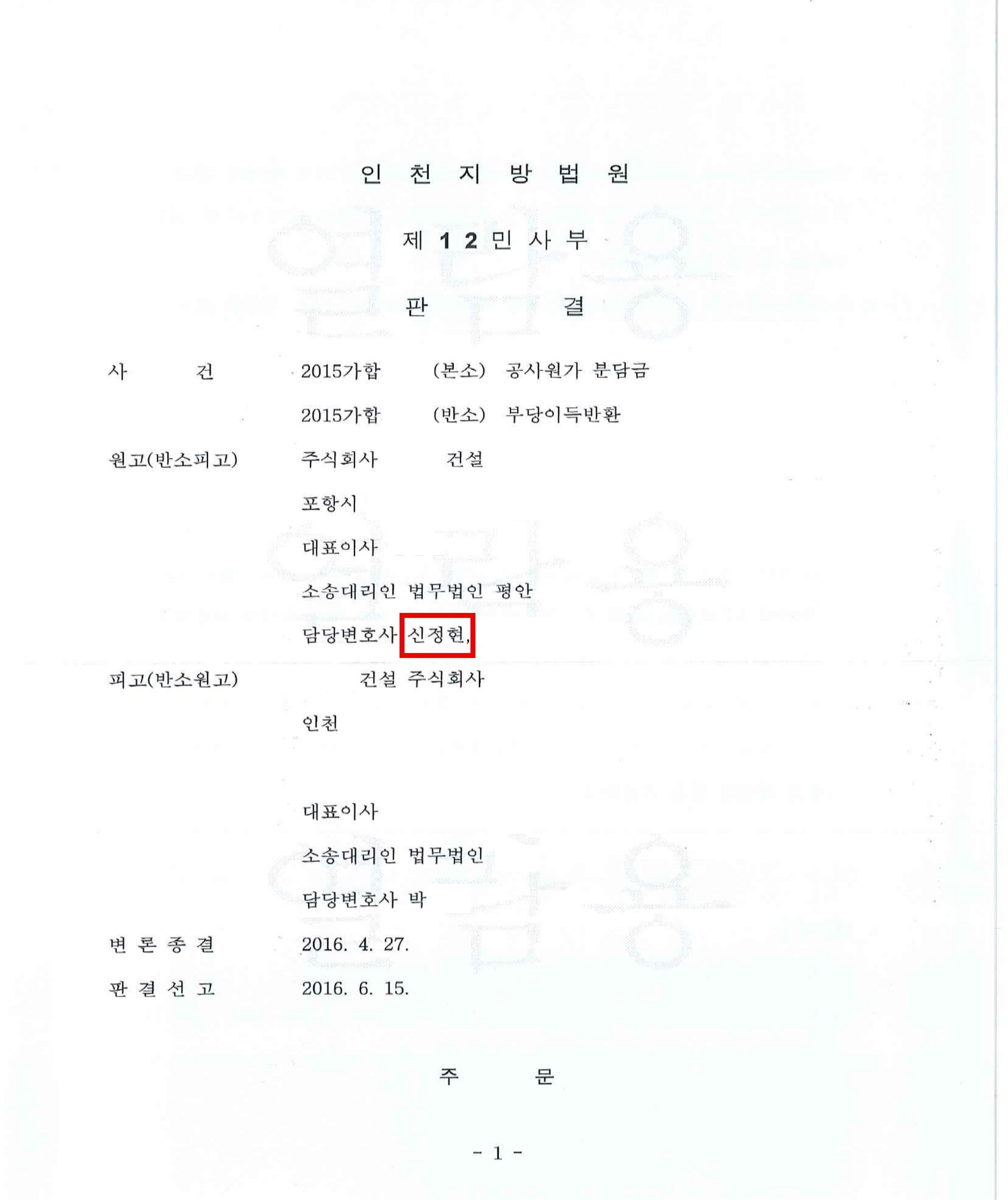이번에는 제가 담당, 수행했던 소송 사건 중에 기억에 남는 건설 관련 소송을 소개할까 합니다.