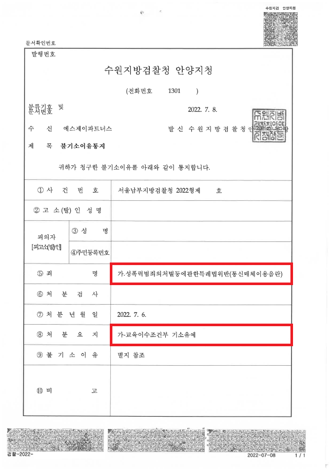 이러한 저의 조력을 바탕으로 A씨는 피해자와 합의하지 않고 혐의를 적극 다투었음에도 불구하고 '기소유예' 처분을 받음으로써 법적 불이익을 최소화하면서 성범죄 전과자가 될 위기에서 벗어날 수 있었습니다.