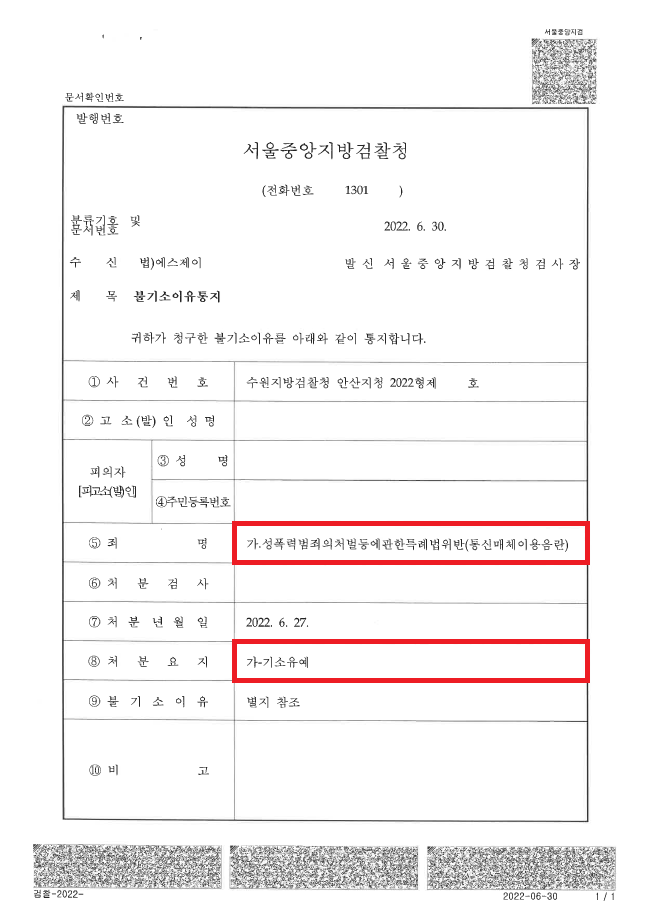 이러한 저의 조력을 바탕으로 A씨는 B씨와 합의하지 않고 혐의를 적극 다투었음에도 불구하고 아무 조건도 없는 '기소유예' 처분을 받음으로써 법적 불이익을 최소화하면서 성범죄 전과자가 될 위기에서 벗어날 수 있었습니다.