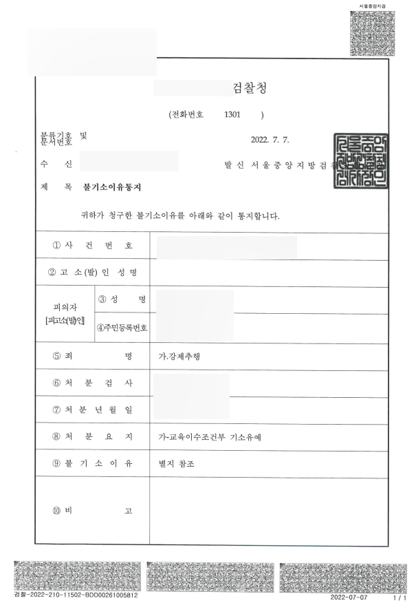 또한 고소인은 동종 범죄 이력이 전혀 없으며 고소인에 대해
