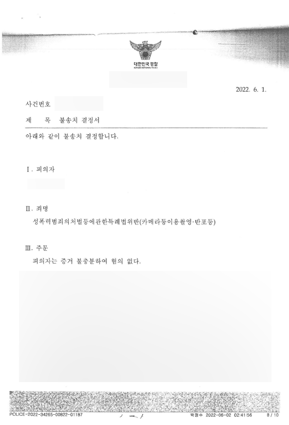 증거 불충분하여 혐의 없음.