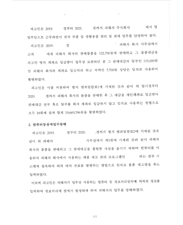 범죄가 발각되고 피해자가 피고인이 절취/횡령하지 않은 금액까지 과다하게 계산하여 고소하는 경우 범죄사실을 인정하더라도 피해금액을 최소화하여야 합니다. 그래야 처벌도 낮춰지고 향후 민사소송 제기시 배상하여야 할 금액도 줄일 수 있기 때문입니다.