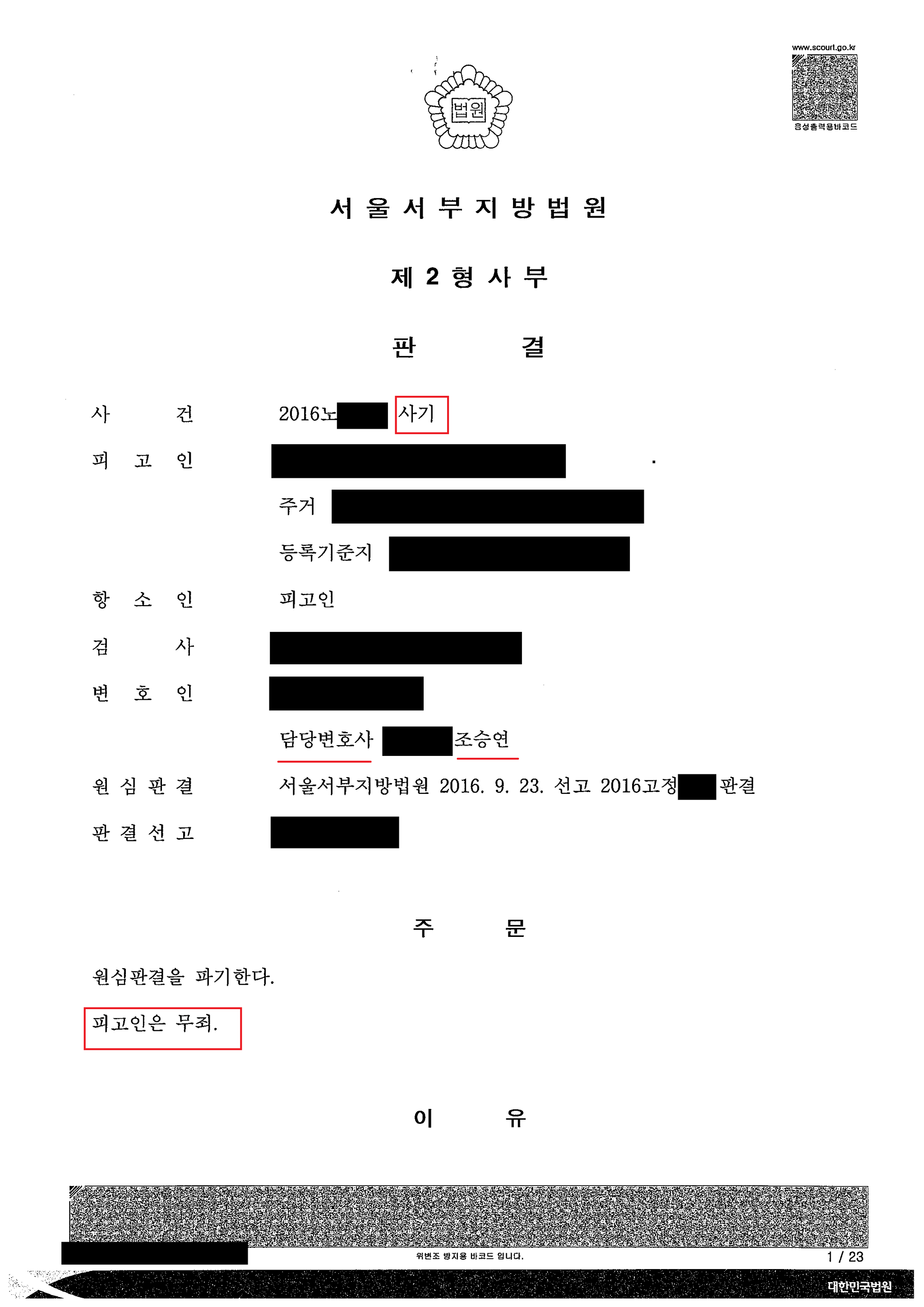법무법인 SC는 의뢰인을 도와 사기 사건의 항소심에서 무죄 판결을 받아낼 수 있었습니다.