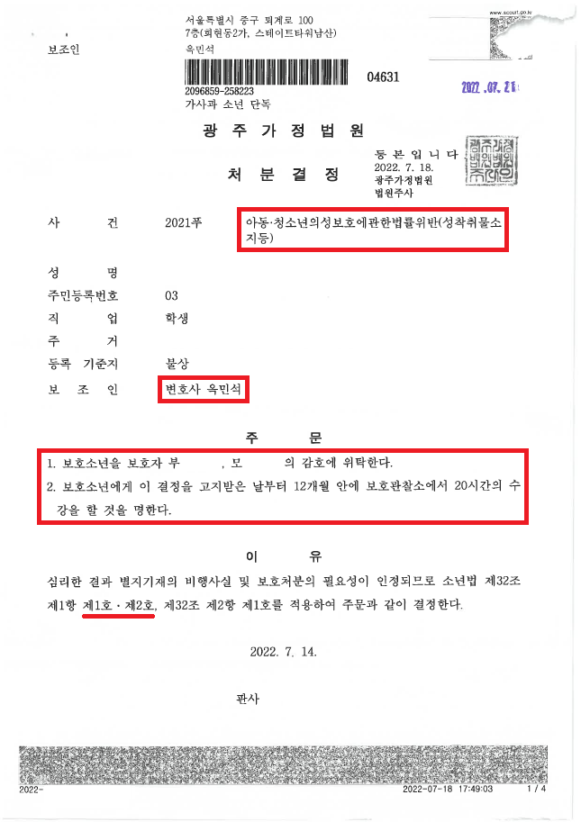 얼마 뒤, 사건은 소년부 송치가 되었고, 이어서 저는,