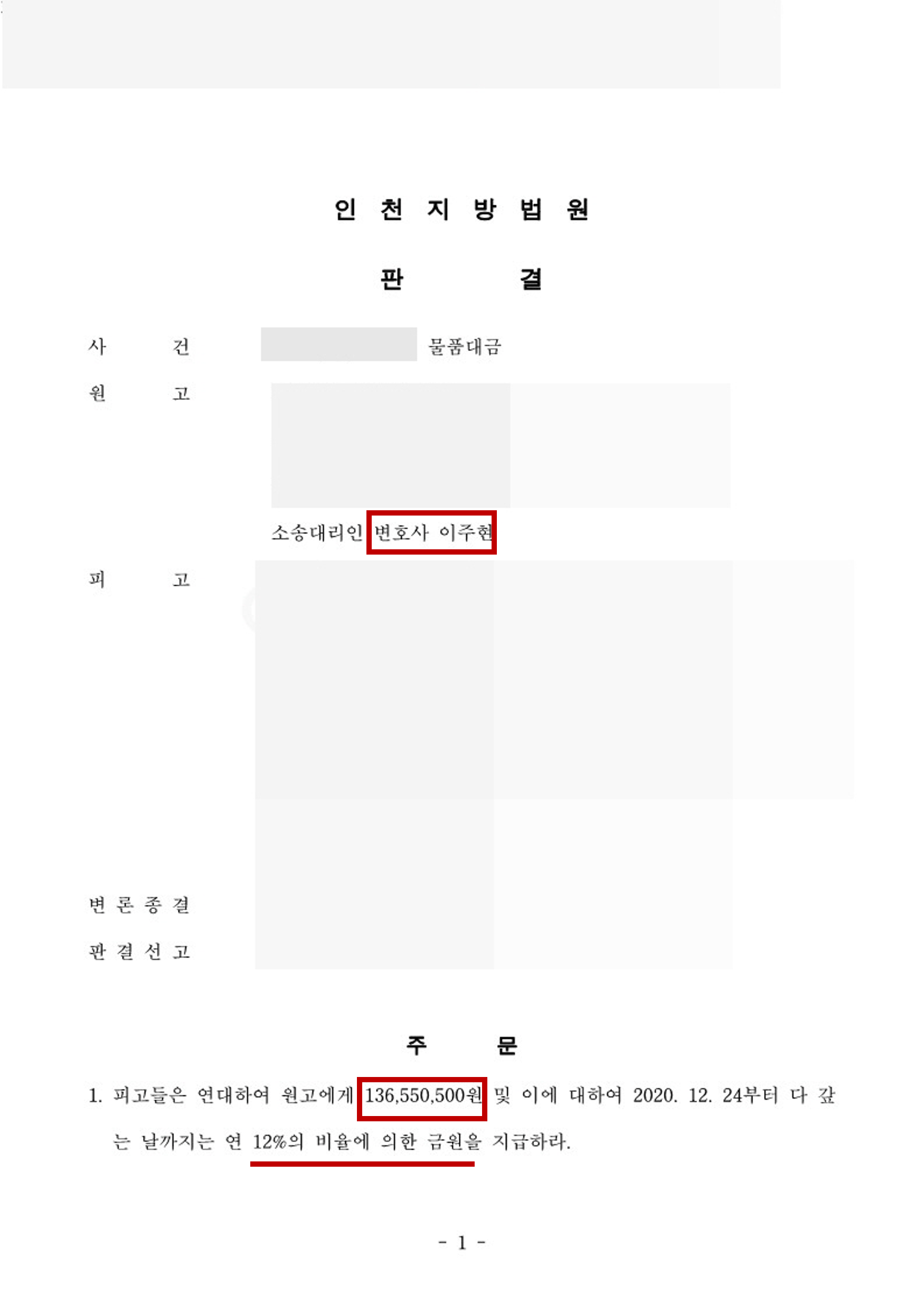 채권자가 방문할 당시 이미 채무자 회사는 급작스럽게 폐업을 한 상황이었기에 가압류를 할 만한 재산이나 채권이 존재하지 아니하였고, 채무자 회사의 대표이사에 대한 판결을 받는 것이 그나마 추심을 할 수 있는 유일한 방법이었습니다. 이에 채무자 회사 및 채무자 회사의 대표이사를 상대로 물품대금 청구의 소를 제기하는 한편, 대표이사에 대한 형사고소를 병행하여 진행하였습니다. 그 사이 채무자 회사의 대표이사는 개인회생을 하여 결국 남아있는 것은 형사고소의 결과만이었습니다. 이후 형사 고소사건에서 대표이사가 기소되었고, 채권액 전부는 아니나 일부의 채권액을 형사 합의금으로 받고 사안을 마무리 하였습니다.