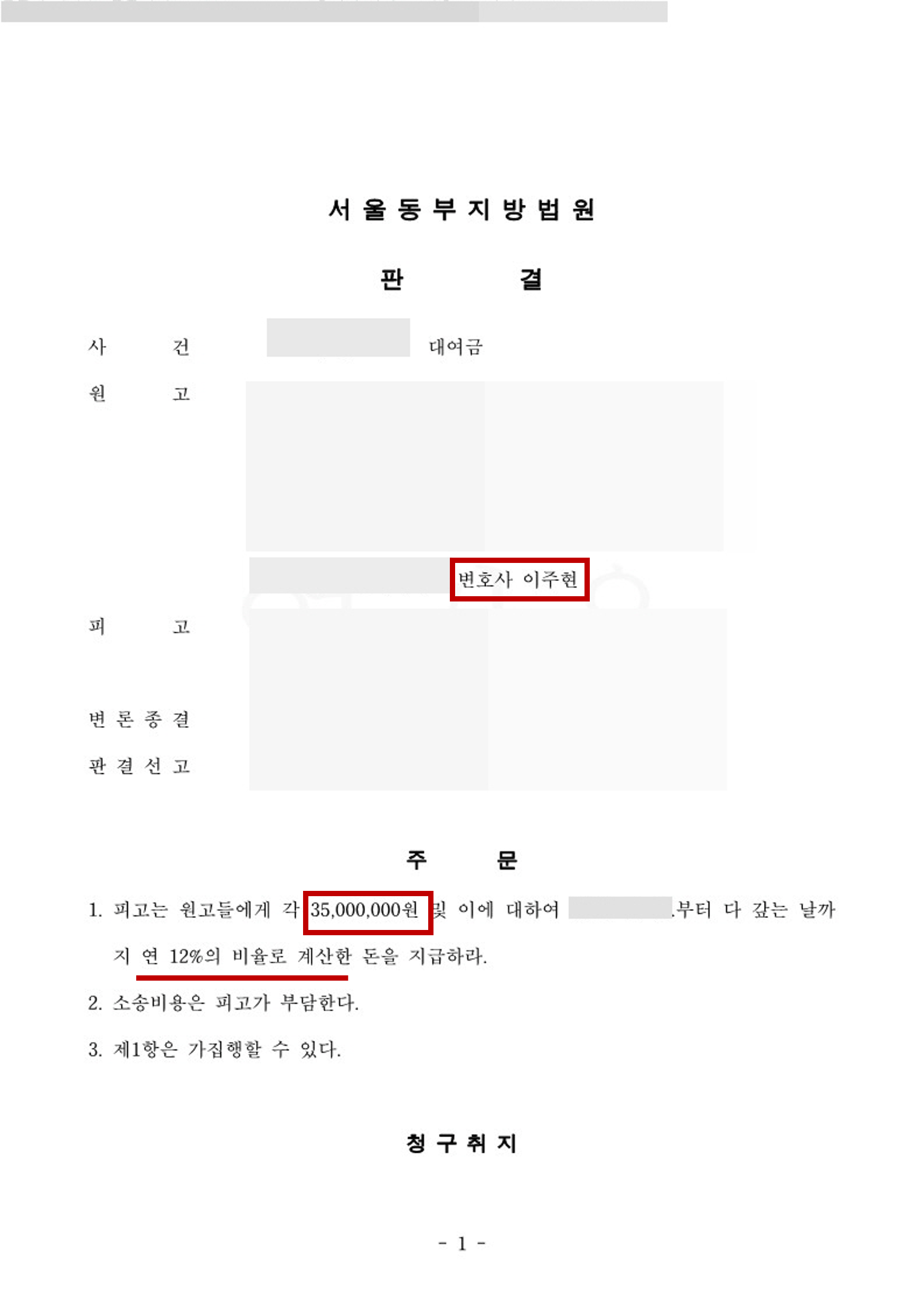 채권자들의 부친이 남긴 재산이라고는 차용증상의 채권 밖에 없었고, 채권자들 모두 자력이 넉넉하지 않은 상황이었기에 채무자의 거주지에 대한 가압류만을 진행하고 대여금 청구의 소를 제기하였습니다. 채무자가 돈을 변제하였다는 항변을 하였으나, 이를 입증할 자료 등을 제출치 못하여 결국 소송은 채권자들의 승소로 마무리되었습니다. 이후 거주지에 대한 강제경매신청을 통하여 채무자에 대하여 압박하였고, 채무자는 거주지에 대한 경매에 대한 우려로 채권액을 분할 변제하겠다는 약속을 받고 경매를 취하하였고, 채무자는 현재까지 위 채권액을 분할 변제하고 있습니다.