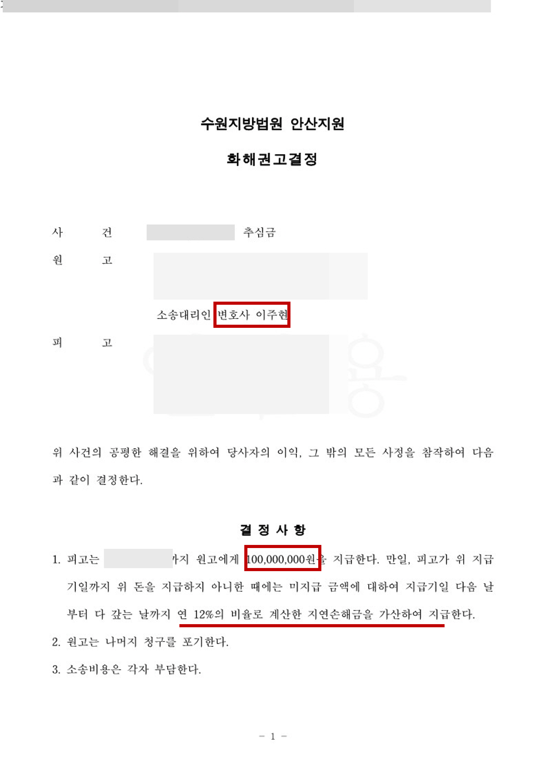 우선, 채권자의 원채무자에 대한 대여금 소송을 진행하였고, 당시 원채무자는 채무자에 대하여 지급 받을 1억원의 토지매매대금 반환금 밖에는 재산이 없어 원채무자의 채무자에 대한 채권을 가압류하였습니다. 이후 대여금 소송에서 승소 후 위 가압류를 본압류로 전이한 뒤 채무자에 대하여 변제를 요청하였으나, 채무자는 이를 거절하여 어쩔 수 없이 추심금 소송을 진행하게 되었고, 채무자의 경우 자력이 상당한 자에 해당하였기에 채무자 소유 거주지에 대한 가압류를 아울러 진행하였습니다. 소송 과정 중 채무자가 금액을 감액해 달라는 요구가 있었으나, 이를 거부하고 소송을 계속하던 중 채무자가 결국 채권자에게 임의 변제하는 것으로 마무리 되었습니다.