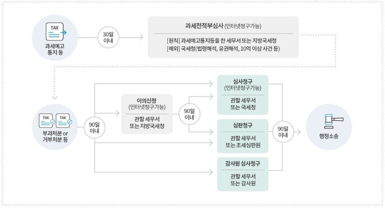 그만큼 조세부과처분은 엄격한 기준에 따라 해야 하고 이에 대한 구제수단도 촘촘히 마련해 놓아, 억울한 세금 부과처분을 없도록 하겠다는 조세철학이 반영된 제도이겠지요.