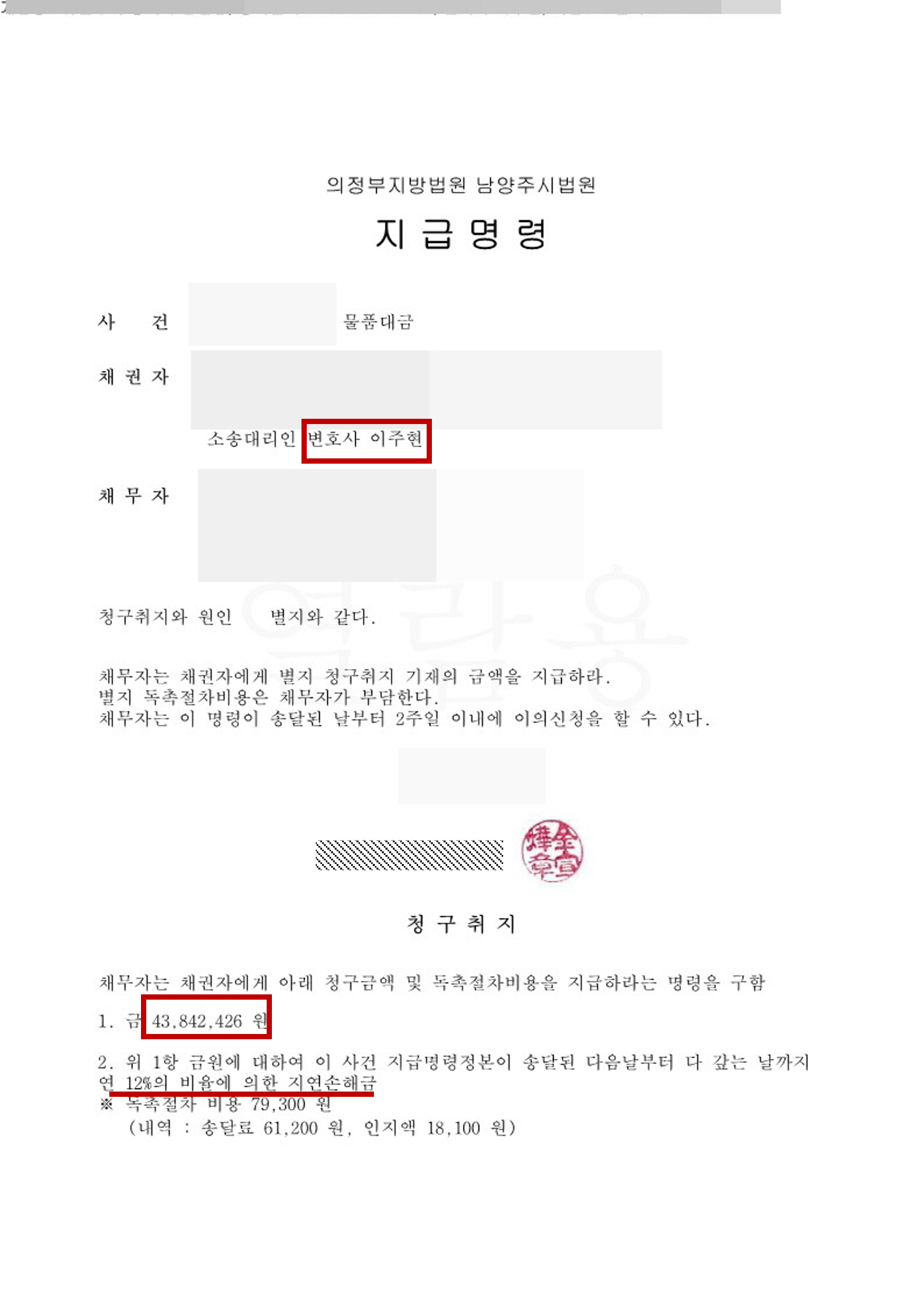 채권자는 도금관련 원료를 납품하는 자이고 채무자는 도금 완제품을 만드는 회사와 위 회사의 대표이사로써 채권자는 채무자들에 대하여 위 원료를 납품하였으나 채무자는 납품 받은 물품대금 중 일부만을 결제하여 미수금이 늘어났고, 더 이상 거래관계를 이어나갈 수 없는 상황에 처하여 그 간의 미수금을 변제 받고자 본 사무소를 방문하였습니다.