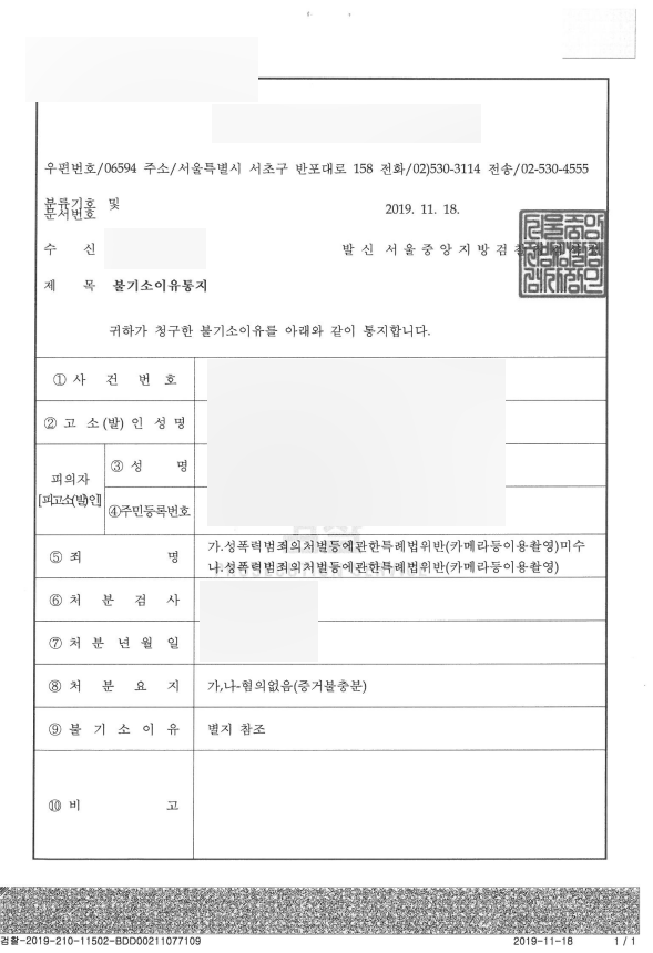 증거 불충분하여 혐의 없음