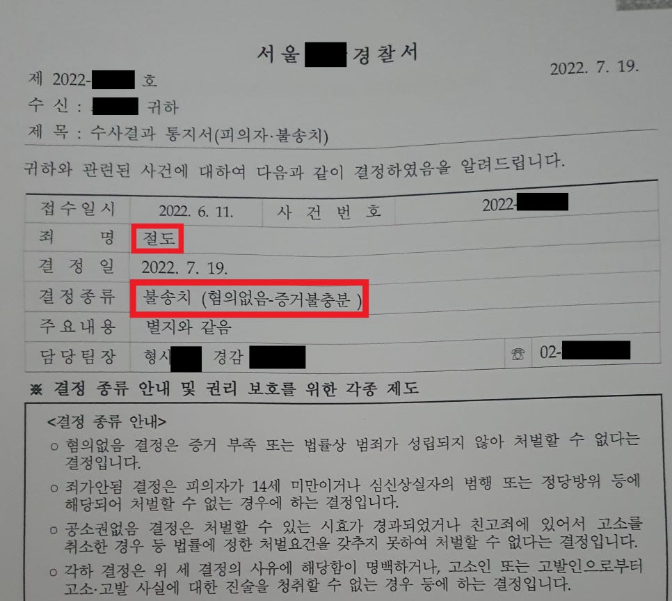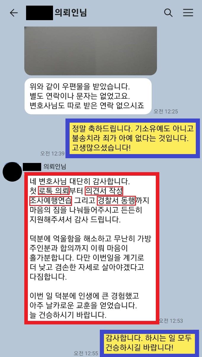 3. 법적 조력 결과 - 검찰로 송치되지 않고, 경찰 단계 불송치로 종결