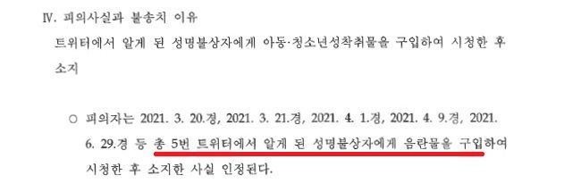 A씨는 2021. 3. 20.경부터 2021. 6. 29.경까지 총 5회에 걸쳐 트위터에서 알게 된 B씨에게 음란물을 구매하였습니다.