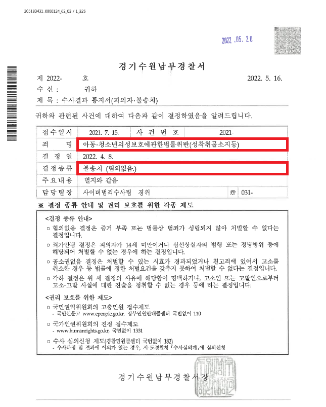 ![[성착취물소지등] 트위터에서 알게 된 판매자에게 음란물을 구매](/_next/image?url=https%3A%2F%2Fd2ai3ajp99ywjy.cloudfront.net%2Fuploads%2Ftitleimage%2Foriginal%2F5c6e24c5bb38fe09bee65333-original.jpg&w=3840&q=75)