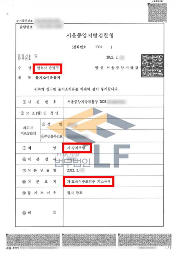 교육이수조건부 기소유예로 사건이 종결됨