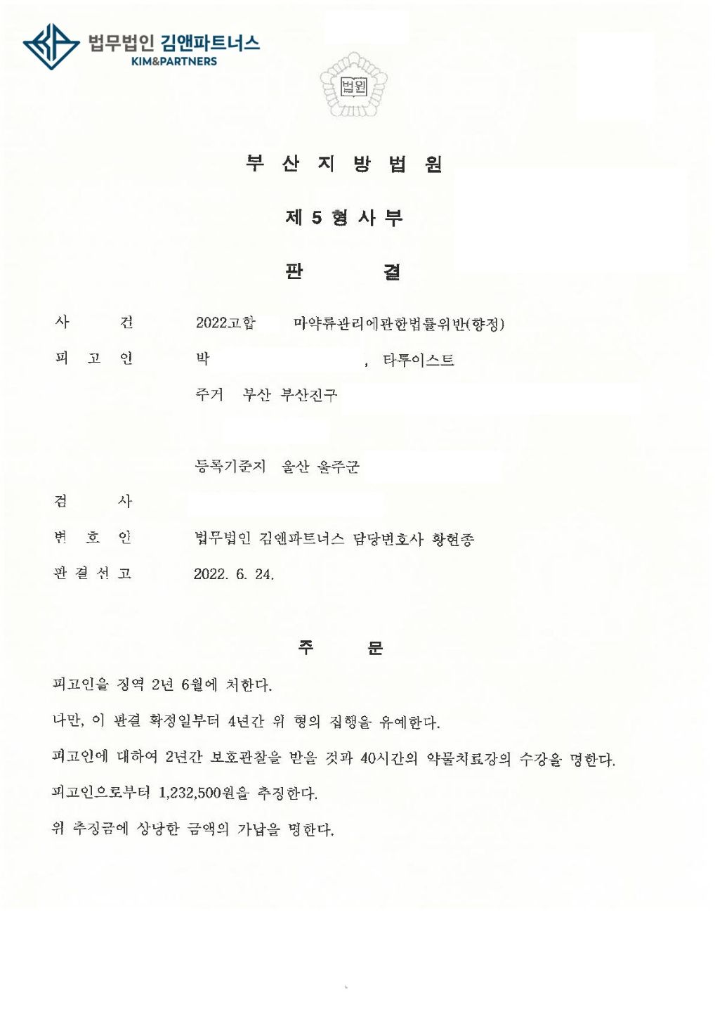 황변호사는 최근 부산지방법원에서 마약인 LSD 500개를 수입한 사건을 담당하여 집행유예 판결을 받았습니다.