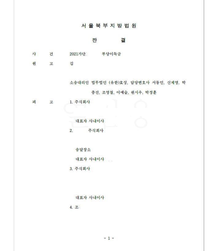 저는 즉각 입금 받은 자들을 피고로 하여 민사소송 부당이득반환청구소송을 제기하였고 승소 확정되어 의뢰인은 피해액을 반환받게 되었습니다.