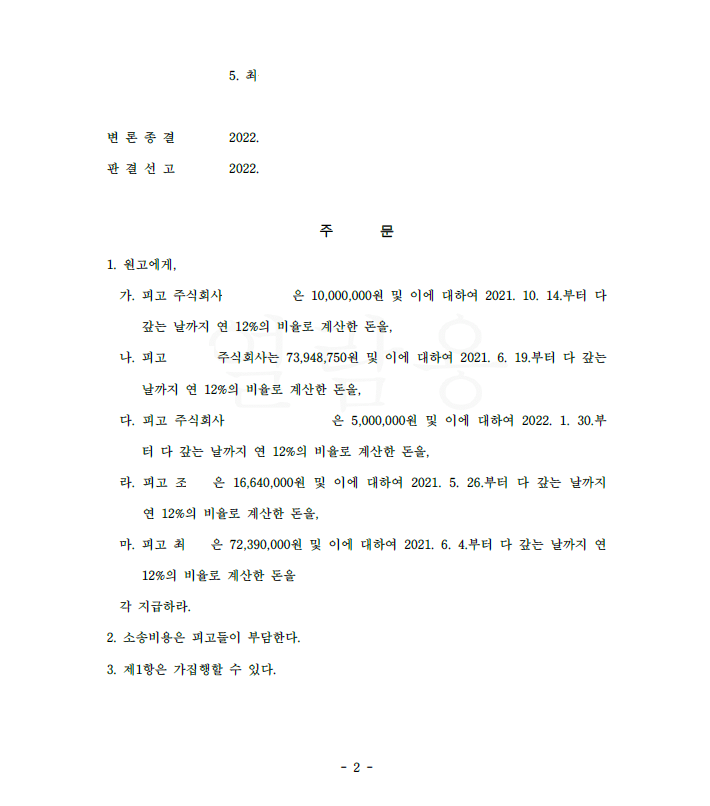 이 사건에서도 의뢰인은 투자 사기를 당하여 피고들에게 피해액을 입금하였고 이를 돌려받기 위해 저를 찾아오셨습니다.