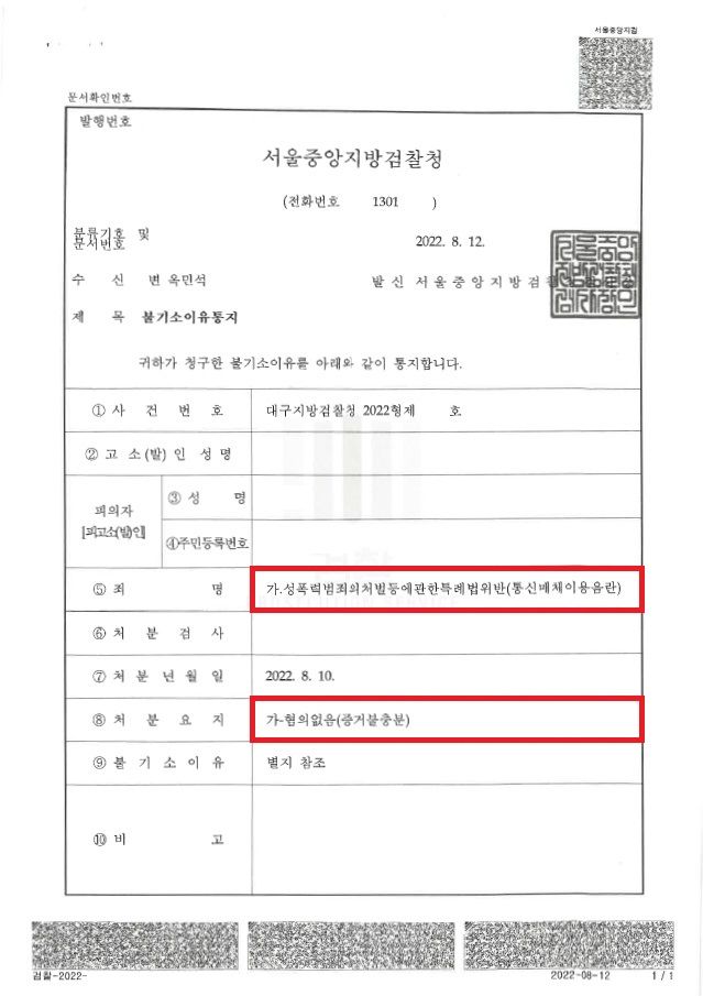 그러나 경찰은 "그래도 전혀 모르는 여성에게 성기 사진을 전송하였으니 잘못한 것은 맞지 않느냐"라는 이유로 사건을 검찰로 송치하였습니다.