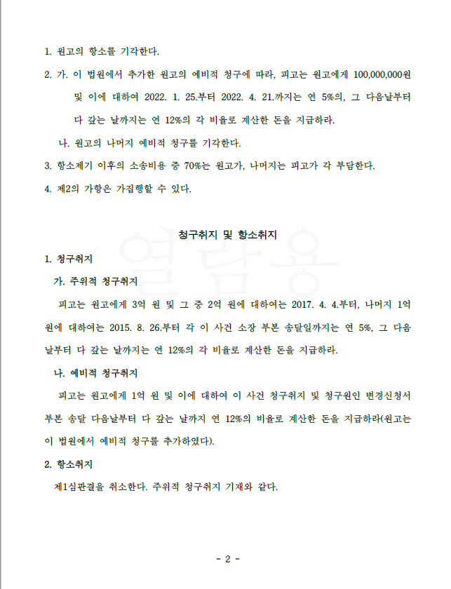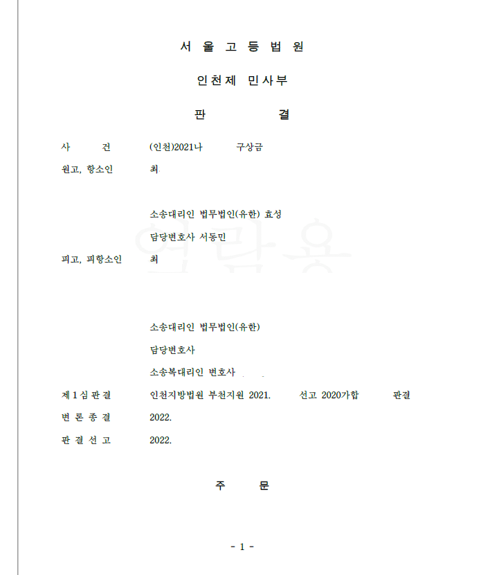 제1심에서 첨예하게 다투었으나 사건의 키를 쥔 채권자들이 사실관계를 확인해 주지 않고 잠적하여 제1심에서 패소하였습니다.
