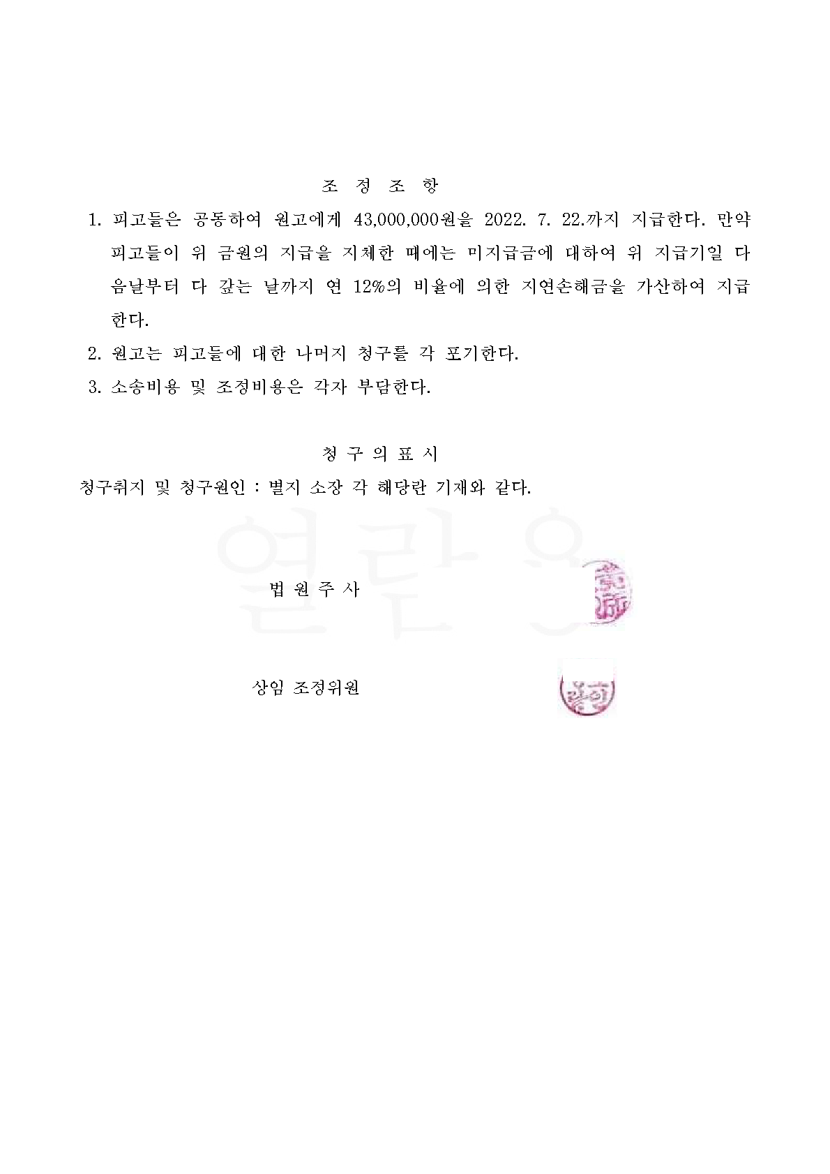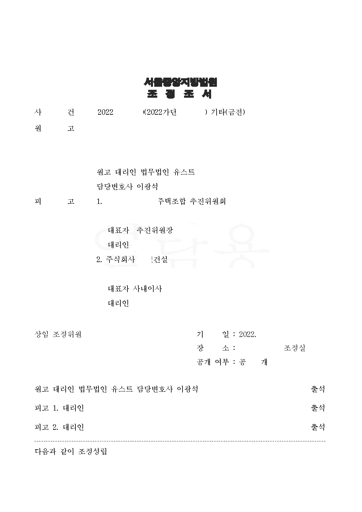 지역주택조합 탈퇴에 따른 분담금 반환 청구소송에서 조정에 의해 승소한 사례입니다.