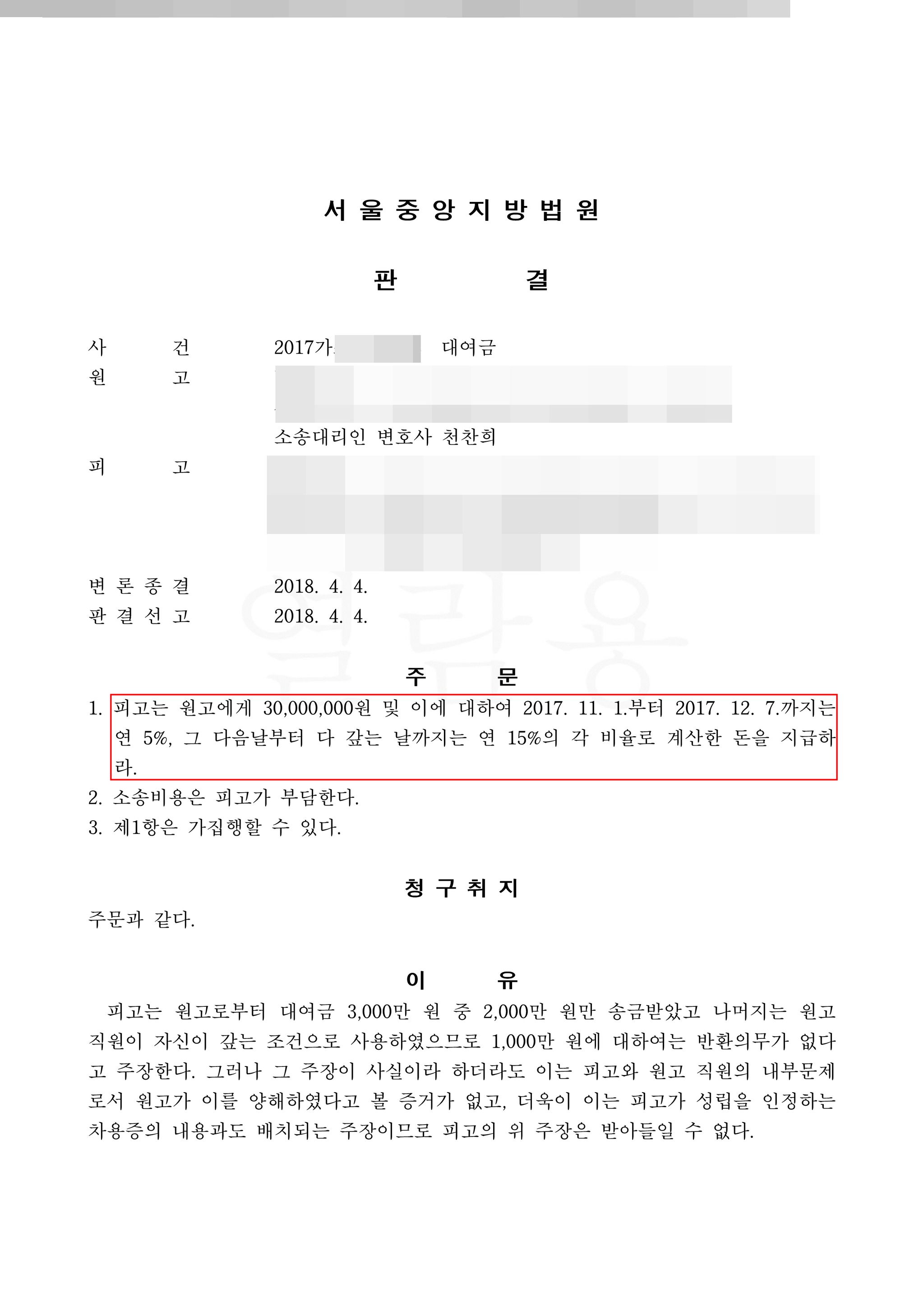 채권자는 채무자에게 3,000만 원을 대여해주면서 변제 기한을 3개월 뒤로 하는 구두 약정을 하고, 따로 서면 계약서는 작성하지 않았습니다. 그런데 채무자는 약속한 변제 기일이 지났음에도 불구하고, 변제를 하지 않았고, 채권자의 지속적인 독촉이 이어지자 그제서야 차용증을 작성하였습니다. 이후 채무자는 3,000만 원을 차용할 당시에 채권자의 직원을 통해 지급 받고, 3,000만 원 중 1,000만 원은 그 직원이 소개료로 사용하였으며, 실제 지급 받은 금액은 2,000만 원에 불과 하기 때문에 본인은 2,000만 원만 지급하겠다고 주장하였습니다.