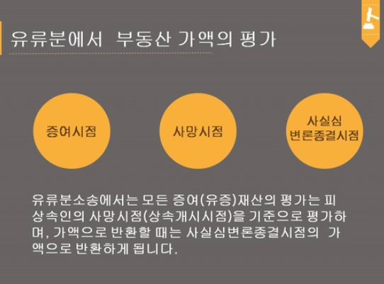 우선 유류분가액을 산정할 때의 시점에 대해서는 3가지가 있는데, 증여할 때, 그리고 돌아가셨을 때(상속개시당시), 소송에 있어서 변론종결시가 있습니다.