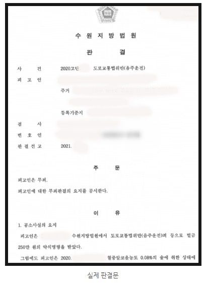 ※ 과거에 두 번의 음주운전 전과가 있는 상태에서 세 번째 음주운전 혐의로 기소되어 무죄 판결 받은 사례 ※