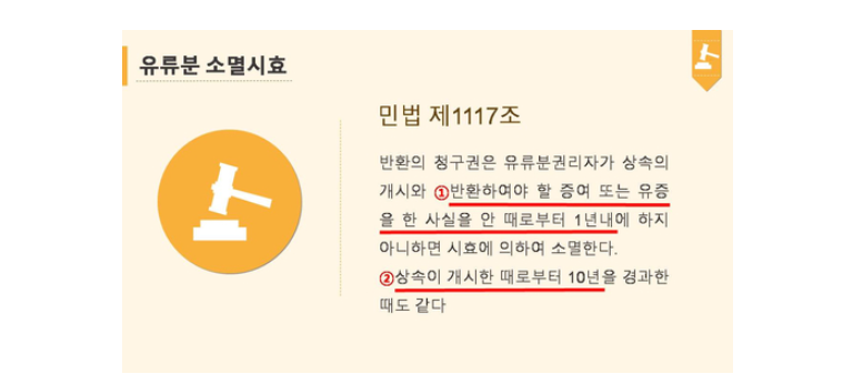 2. 유류분반환청구는 1년 이내에 민사법원에 제기하셔야 합니다.