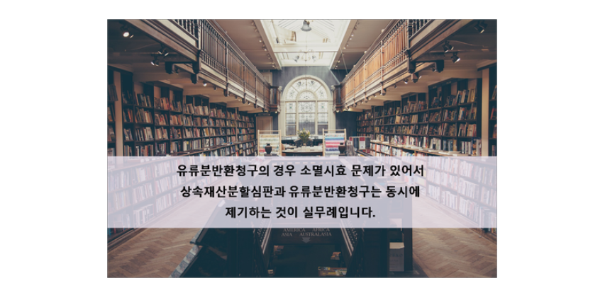 다만, 위 상속재산분할심판청구는 가정법원에 제기하셔야 하고, 유류분반환청구는 민사법원에 제기하셔야 하는데, 유류분반환청구의 경우 소멸시효의 문제가 있어서 일반적으로 상속재산분할과 유류분반환청구는 동시에 제기하는 것이 실무례입니다.