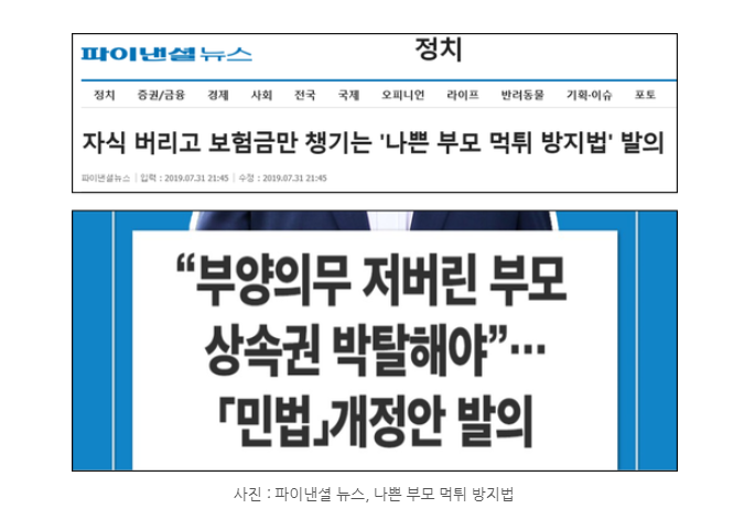 위와 같은 사례가 지속적으로 발생하자, 이른바"나쁜 부모 먹튀 방지법"을 만들어야 한다는 취지로, 국회에 민법개정안이 발의되었습니다.